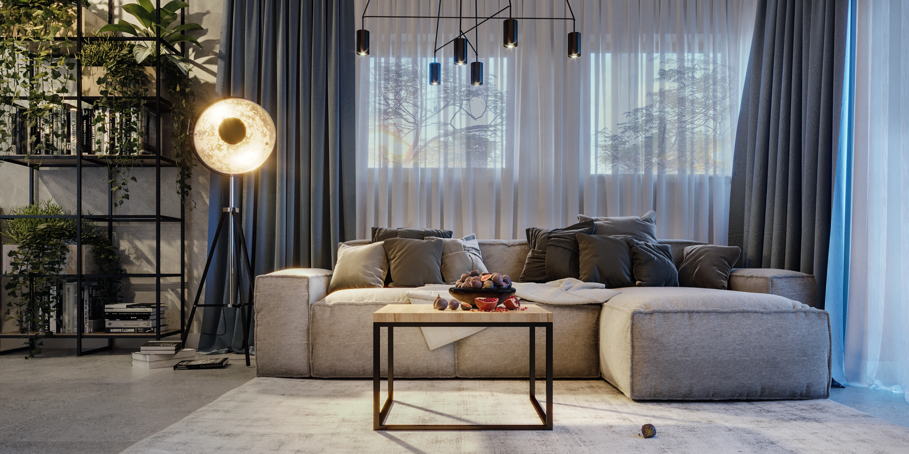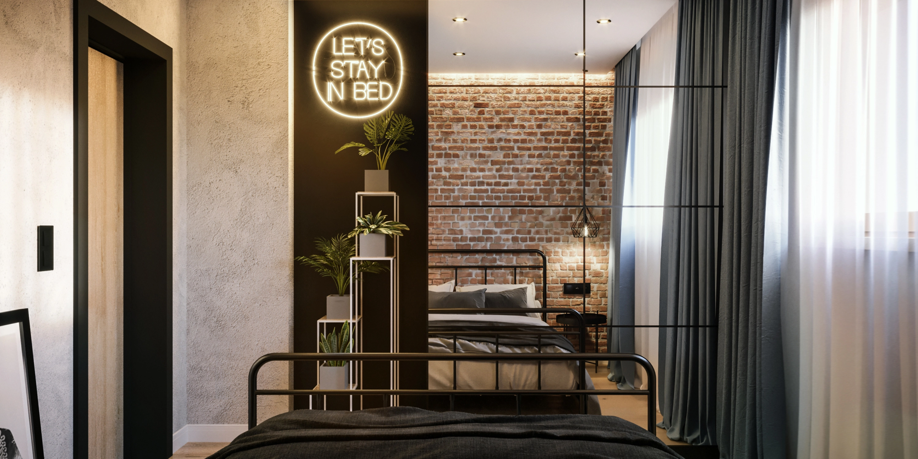 Mieszkanie nie jest jednak typowo industrialne - dzięki miękkiej kanapie, zasłonom w oknach i dodatkom w postaci roślinności udało się uzyskać efekt przytulności, który sprawia, że przestrzeń jest idealna do codziennego życia.