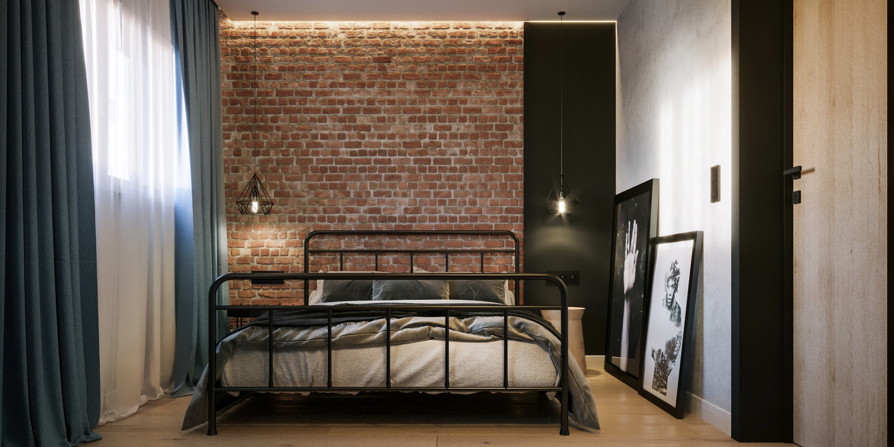 Aranżacja utrzymana jest w charakterystycznym stylu loftowym, opartym na surowych, ale szlachetnych materiałach. Betonowe tynki zostały przełamane cegłą i ocieplone drewnem, które równoważy chłód metalu i nadaje wnętrzu bardziej przyjaznego charakteru.