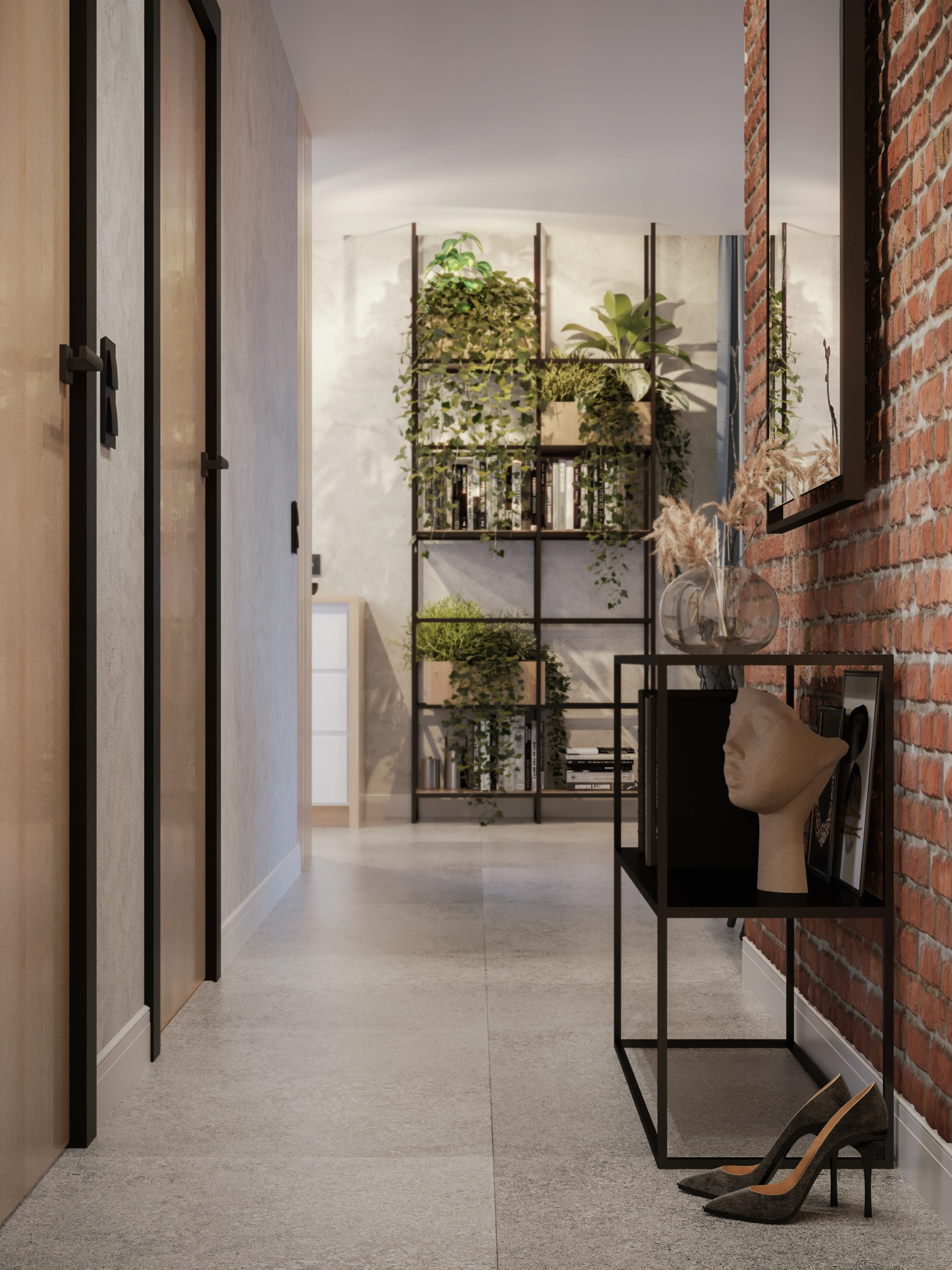 - połączenie materiałów - beton, cegła, drewno i metal zestawione w spójnej kompozycji,